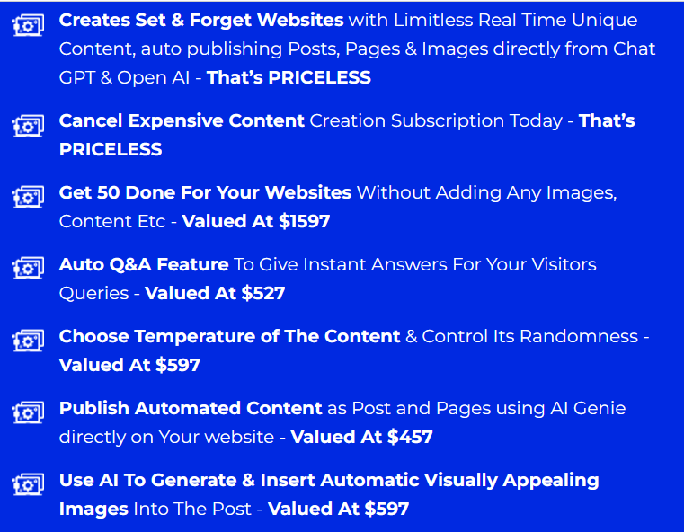 AI Genie is the world’s first truly open AI-connected WordPress software that effortlessly creates set-and-forget websites with limitless, real-time unique content. This revolutionary tool automatically publishes posts, pages, and images directly from Chat GPT and Open AI, catering to any niche, all at a low, launch-exclusive one-time price.