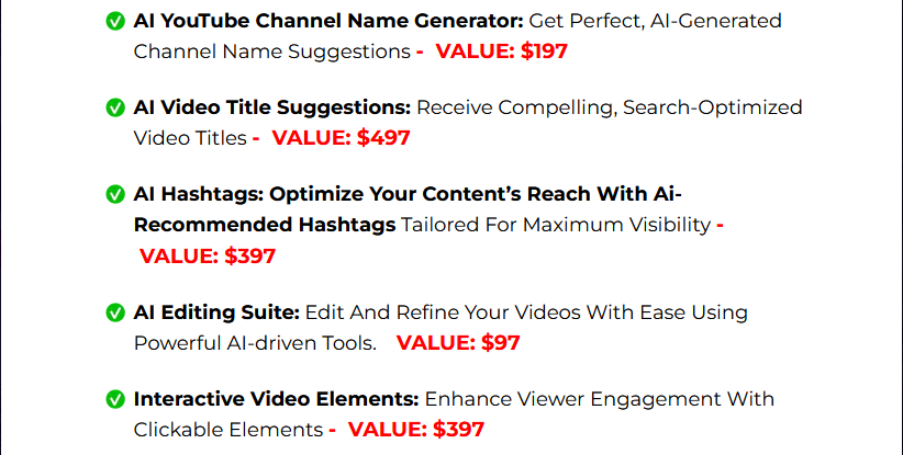 ✔️AIVideo Title Suggestions: Receive compelling, search-optimized video title ideas.