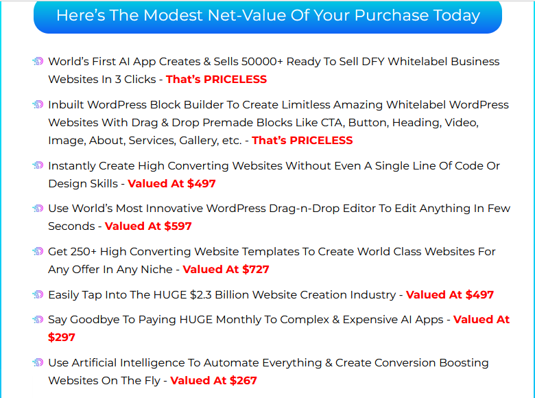 This cutting-edge AI app claims to be the first and only platform that creates and sells 50,000+ DFY business websites with inbuilt WordPress block builder capabilities. Whether you’re a business owner, marketer, or entrepreneur, DFY AI Sites eliminates the need for expensive third-party platforms, freelancers, and coding hassles.